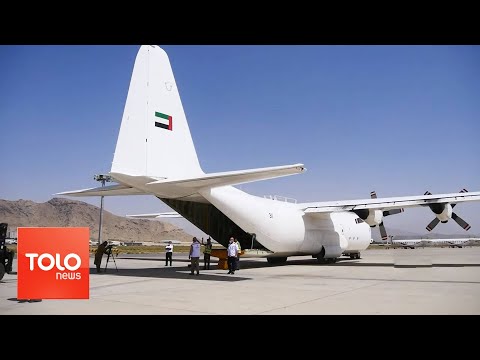 A third airplane carrying aid from the United Arab Emirates landed in Kabul on Friday and the cargo was handed over to Taliban officials for distribution to people in need.